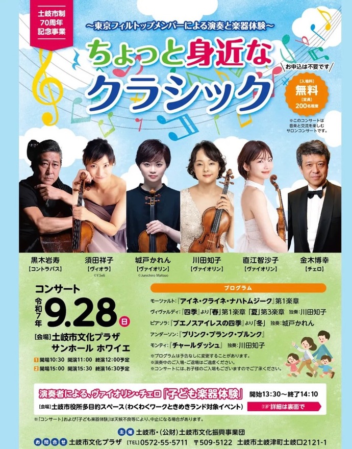 土岐市制70周年記念事業 東京フィルトップメンバーによる演奏と楽器体験「ちょっと身近なクラシック」