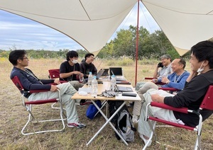 10月20日には株式会社スノーピーク地方創生コンサルティングの協力のもと、アウトドア会議を体験しました。緑と自然音に囲まれた心地よい環境の中、テントでアウトドア会議室を設営し、仕事とキャンプの親和性などについて話し合いました。